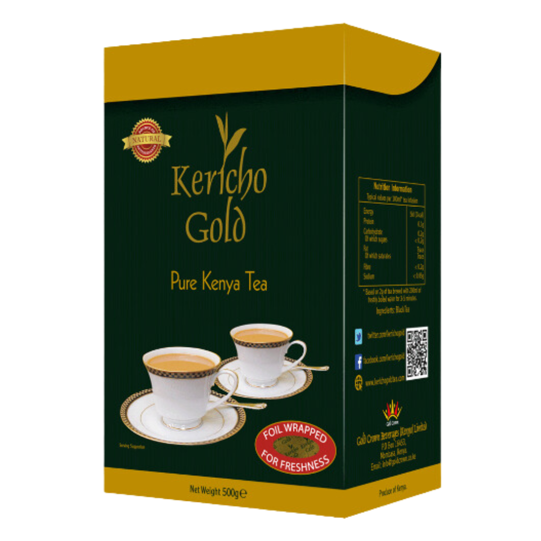 Kericho Gold has a distinct bright colour and aromatic flavor due to the country’s equatorial climate and rich volcanic soil. Pure Kenya Tea. 500g .