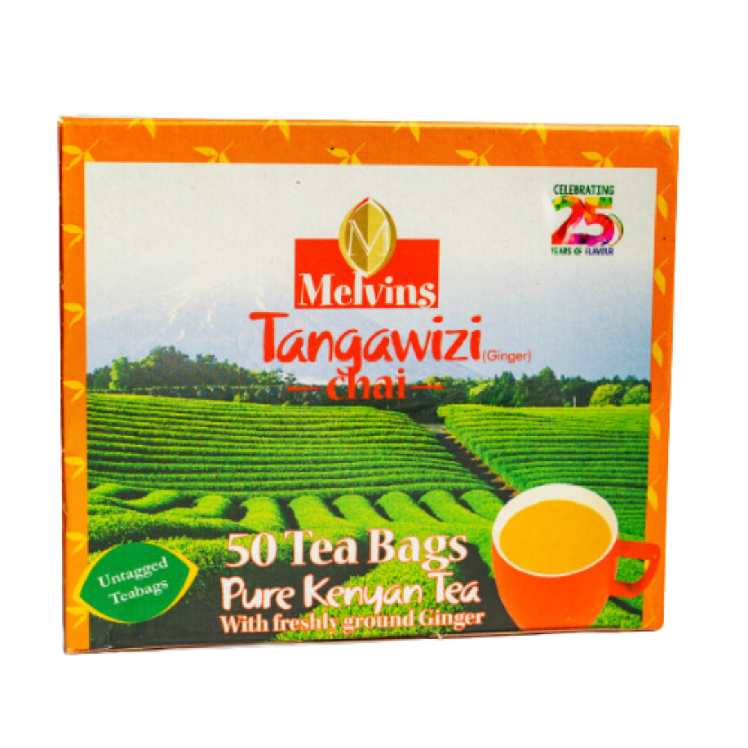 Melvins ginger tea from Kenya . 50 tea bags . Pure Kenyan tea with ground Ginger . Untagged teabags.